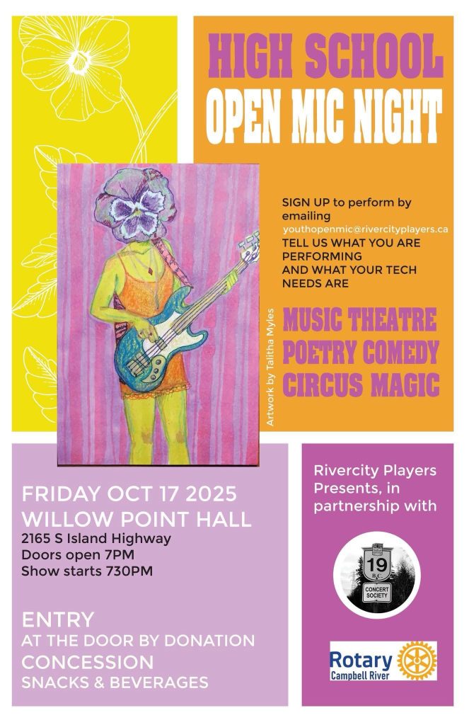 Exciting times are ahead for music enthusiasts! Willow Point Hall (Lions Hall) in Campbell River will host a High School Open-Mic night.